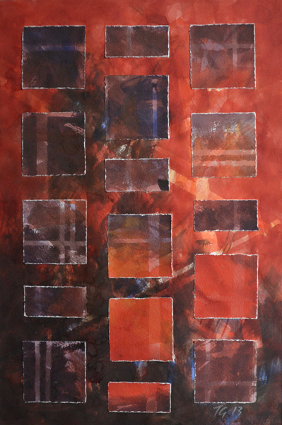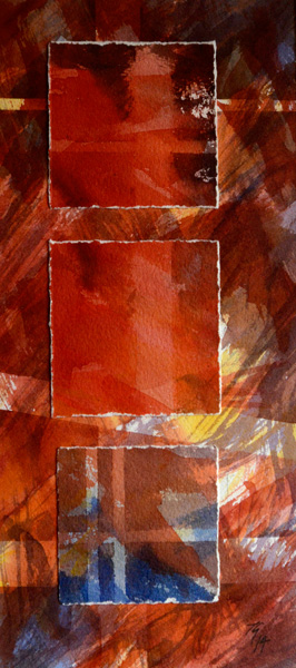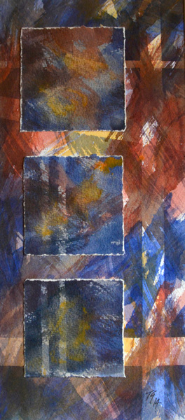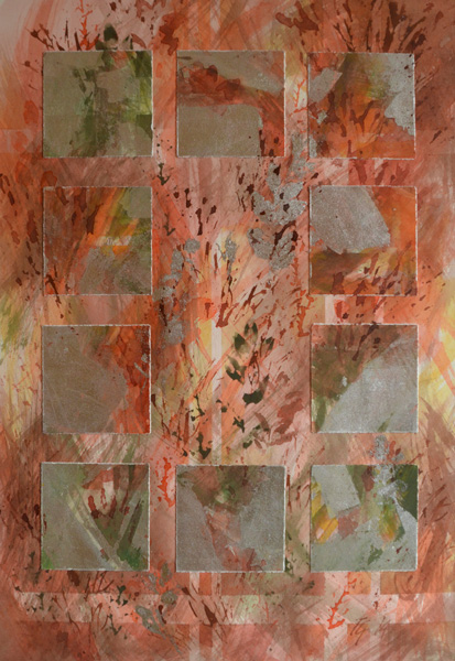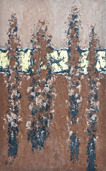 Returning with a range of natural ochre colours, he has used these on plywood panels to show dense matt colour and texture of the earthy medium suggestive of elements seen in the Western Australian GOLDFIELDS – April 2017