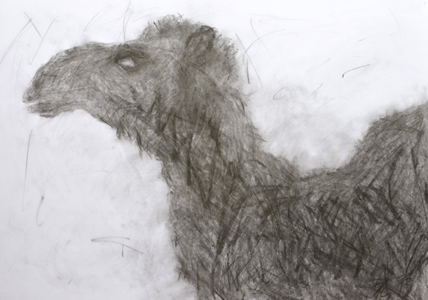 Some ‘explorer’ camels escaped or were set free in the outback in the 19th century. Burke and Wills were up this way back in 1860 so, if their camels survived I figure these at Silverton might just be about, shall we say, 15th generation progeny of those 1860 expedition camels, which brings me to the charcoal you see used here.